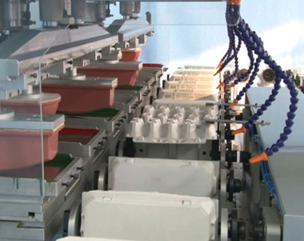 該款自動化移印機為滿足客戶需求而專門設計,內置六臺160行程組合為八色。私服馬達驅動28位轉盤工作臺,四面印刷位旋轉,一次可印刷四個面,印刷速度快,此機型為機械配合電氣控制相結合的多功能自動移印系列機型。